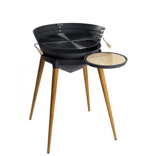 Полностью чугунный контейнер очага с защитным экраном. Устройство шлакоудаления внизу очага. Центральная вентиляция с диффузором. Решетка для древесного угля. Регулирование решетки по высоте. Досягаемая рабочая поверхность. 4 деревянные ножки.