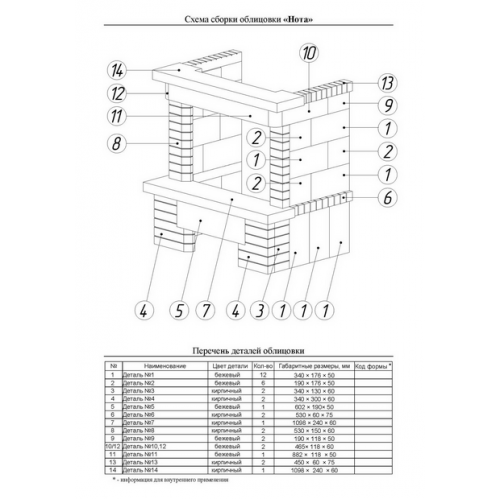 Каминная облицовка Нота изготовлена из камня Meta Stone™ бежевого и терракотового цвета. Камень не подвержен разрушению, не выделяет ядовитых веществ при нагревании, обладает высокой стойкостью к перепаду температур, не выцветает и не деформируется. Каминная облицовка Нота предназначена для оформления стальных и чугунных топок как российского, так и импортного производства с шириной фасада 700 мм.