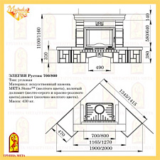 Облицовка камина Руна изготовлена по новым технологиям из натурального мрамора "Галала" или "Крем Нова", камня на корпусе - травертин "Оро" и желтого доломита. Балки изготовлены из МДФ с натуральным дубовым шпоном. Данная облицовка может обогреть помещение в дачном доме, коттедже до 150 м2, в зависимости от выбранной топки.