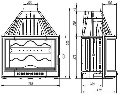 Данная большая чугунная  каминная топка имеет следующие опции: