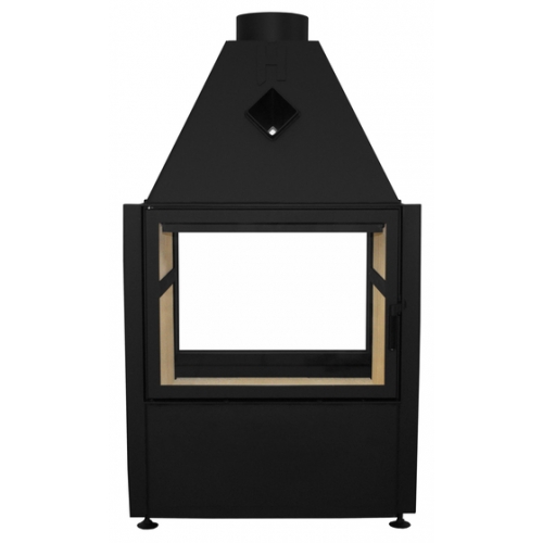 Термостойкость стекла до 800 гр Ц., в зависимости от модели топки, возможно применение двухстороннего или самоочищающегося стекла. Дымовая труба проходящая через длинный шибер для дополнительного теплого воздуха из газов - экономия на каждый день