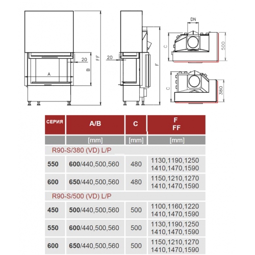 Каминная топка Kobok Corner 720 VD R90-S/500 L/P