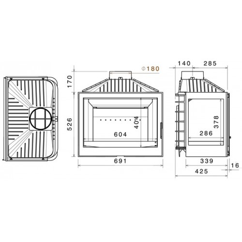 Топка L7 RL (Liseo). С дымосборником. С правым и левым боковыми стеклами.