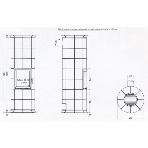 - Высота подключения 1830 мм (верхняя кромка дымовой трубы)