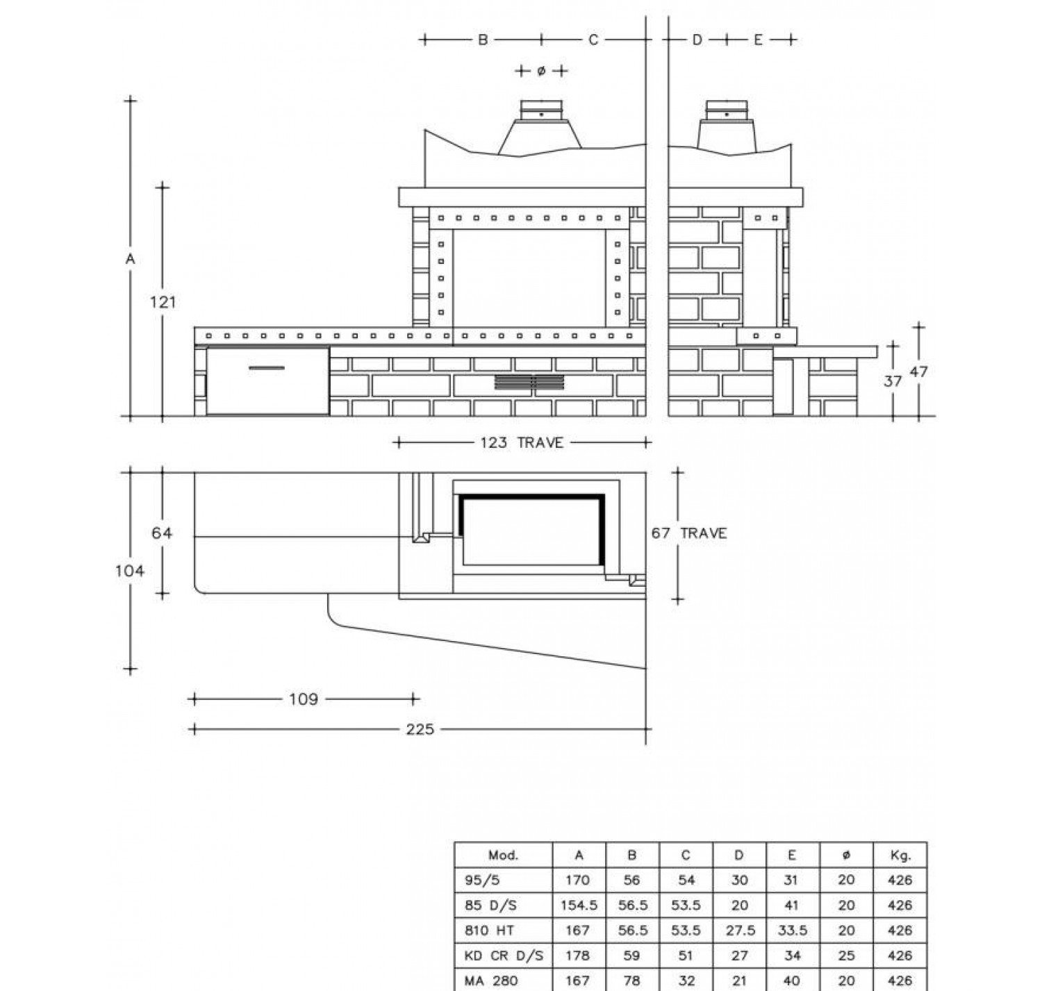 Облицовка из травертина, имитирующего кирпичную кладку. Очаг и полка из состаренного камня Giallo dIstria. Балка и банкетка из древесины грецкого ореха. По запросы: выдвижной ящик из древесины грецкого ореха.  На фото представлена модель с дровяной топкой HT 810. Dx - банкетка слева Sx - банкетка справа Roma ч