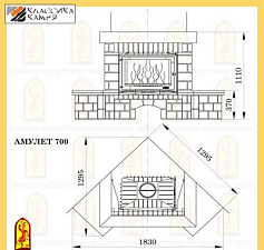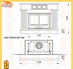 Предтопочная и надтопочная часть выложена шамотом песочно-жёлтого цвета. Каминная балка изготовленная из МДФ и покрытая шпоном дуба, послужит отличной полкой для каминных аксессуаров, таких как часы, канделябры, рамки с фотографиями и др.