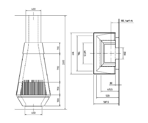 Цена указана за камин в стандартном исполнении (см. чертеж).