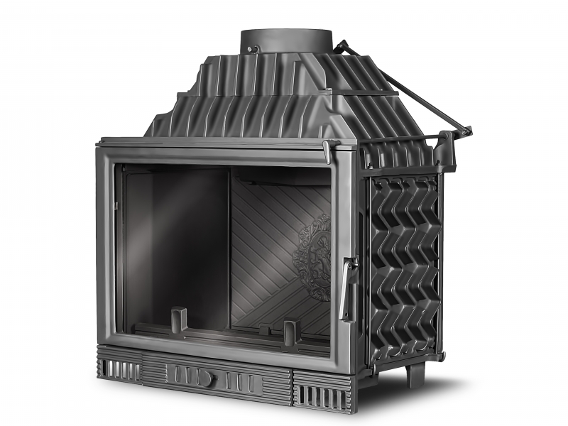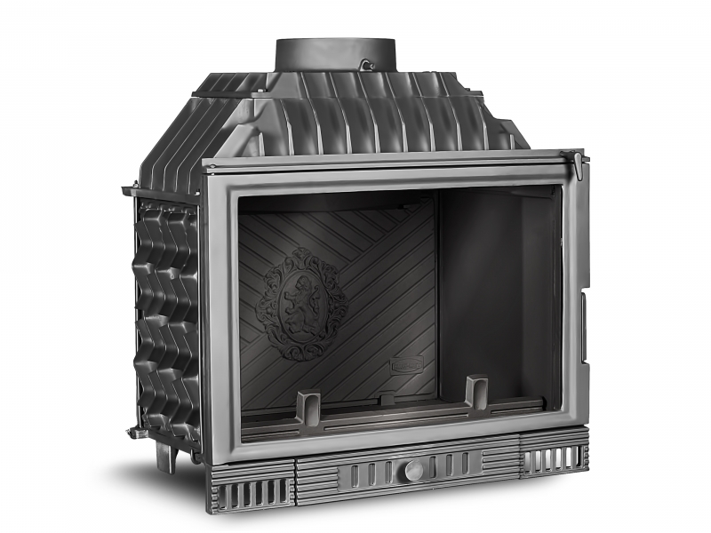 Классическая каминная топка W2 14,4 кВт это топка W1 с уменьшенной мощностью, используется для отопления помещений как качественный дизайнерский отопительный прибор, а также как предмет интерьера. Жаростойкая плита в задней части топки декорирована фениксом или гербом со львом на выбор.