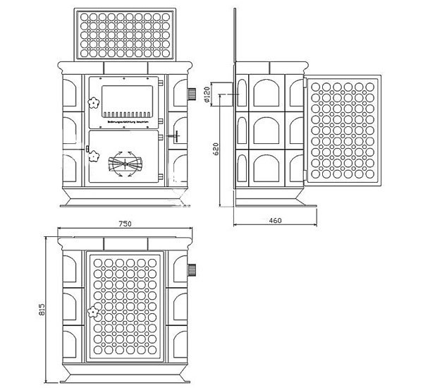 - Диаметр дымохода, (мм) 120