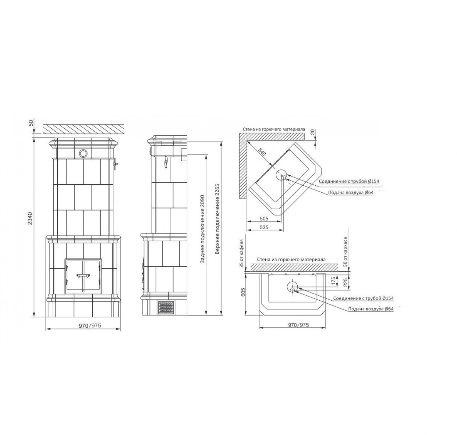 - Диаметр дымохода, (мм) 150 мм.